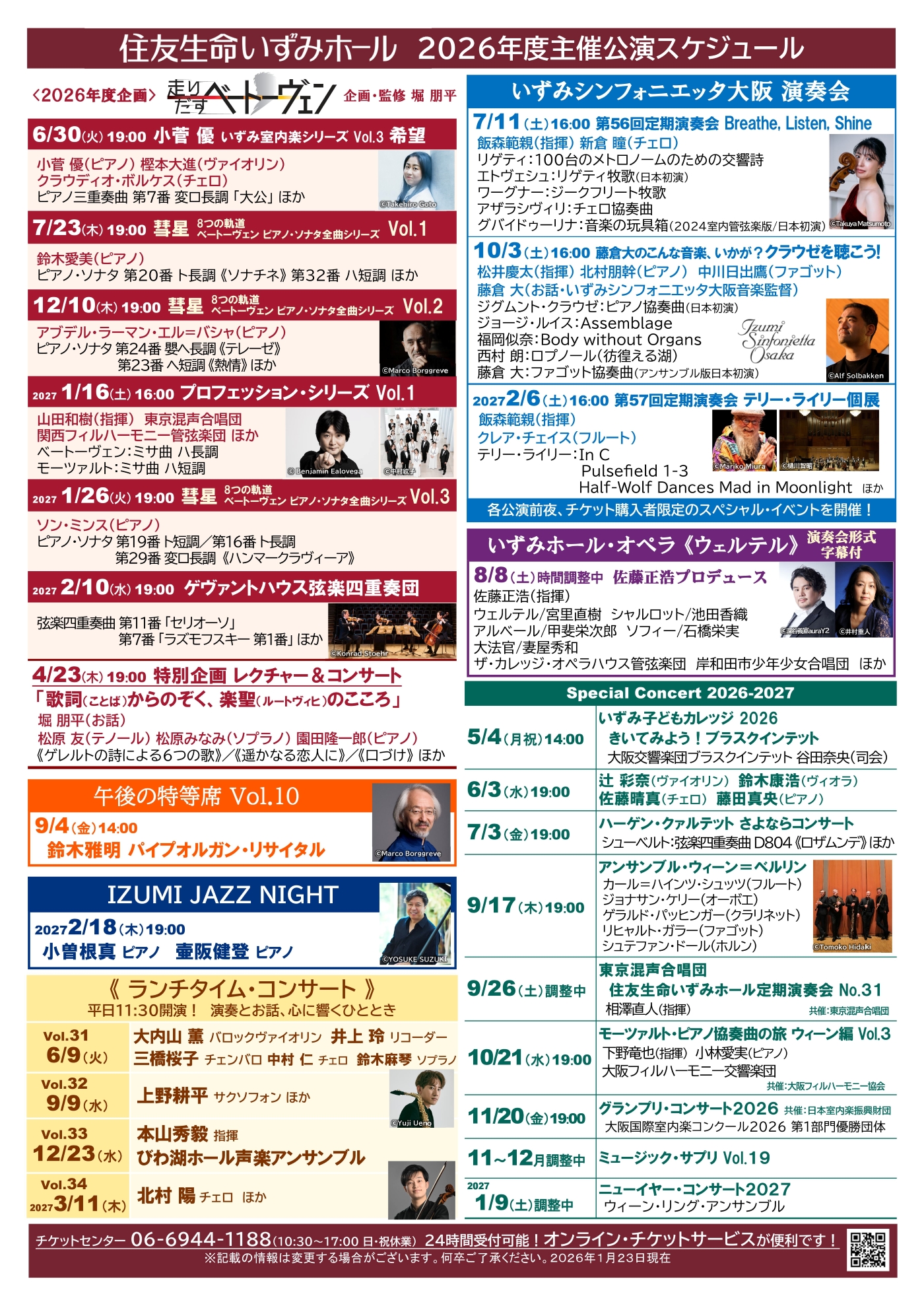 住友生命いずみホール主催公演 2026-2027スケジュール(2026.1/24)