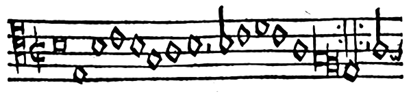 鈴木 まず《深き淵より》は、詩編130編に基づくアカペラの作品で、「主よ、あなた様がすべての咎に目を止められるなら、我々はいかにして御前に立ちえましょう」という嘆きの歌です。基になった詩編の旋律は、下って上にまた戻ってくる「淵」を図形的に描いています。(譜例)