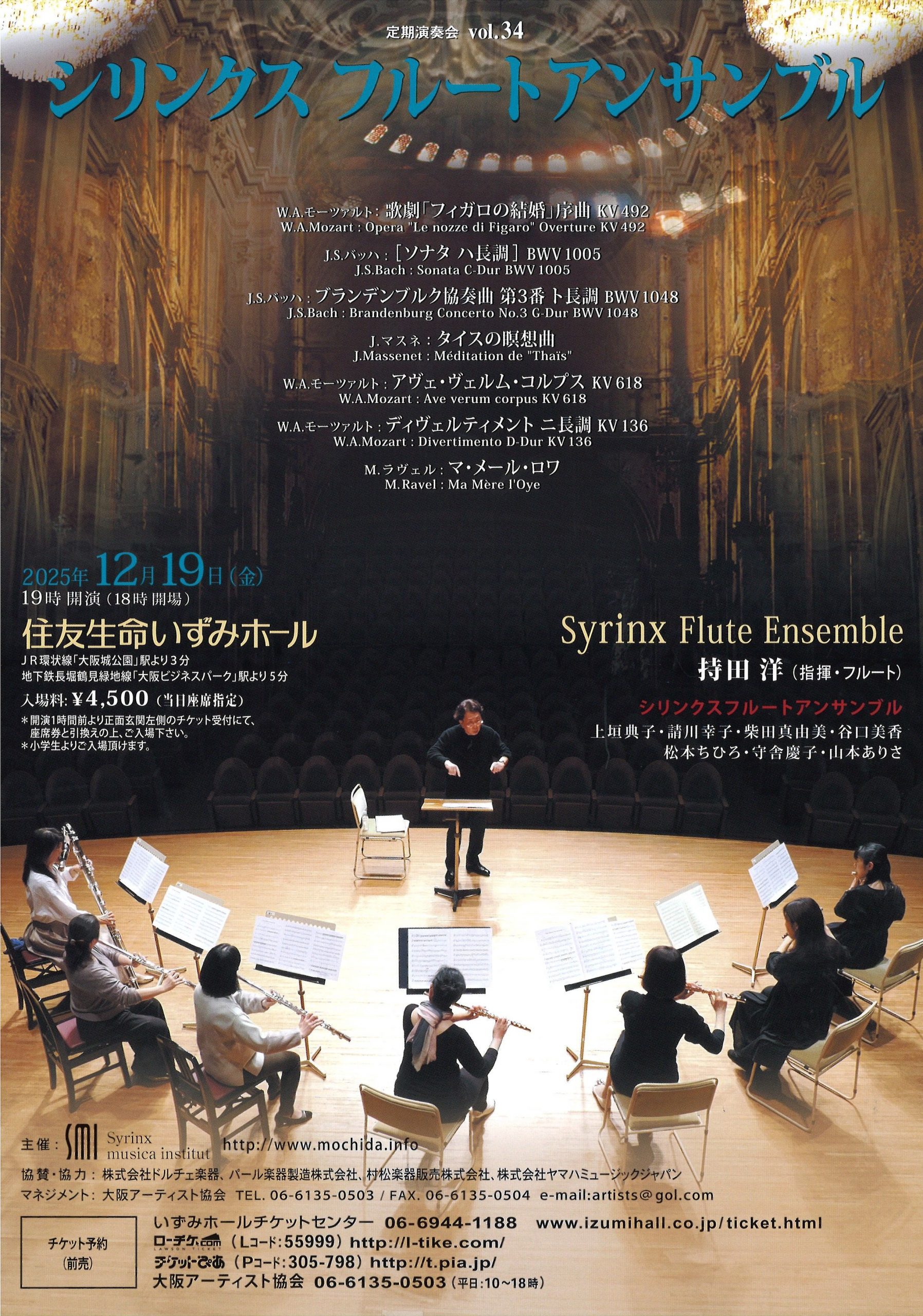 出演者 | 持田 洋(指揮、fl) シリンクスフルートアンサンブル [上垣典子、 請川幸子、 柴田真由美、谷口美香、松本ちひろ、守舎慶子、山本ありさ(fl)] |