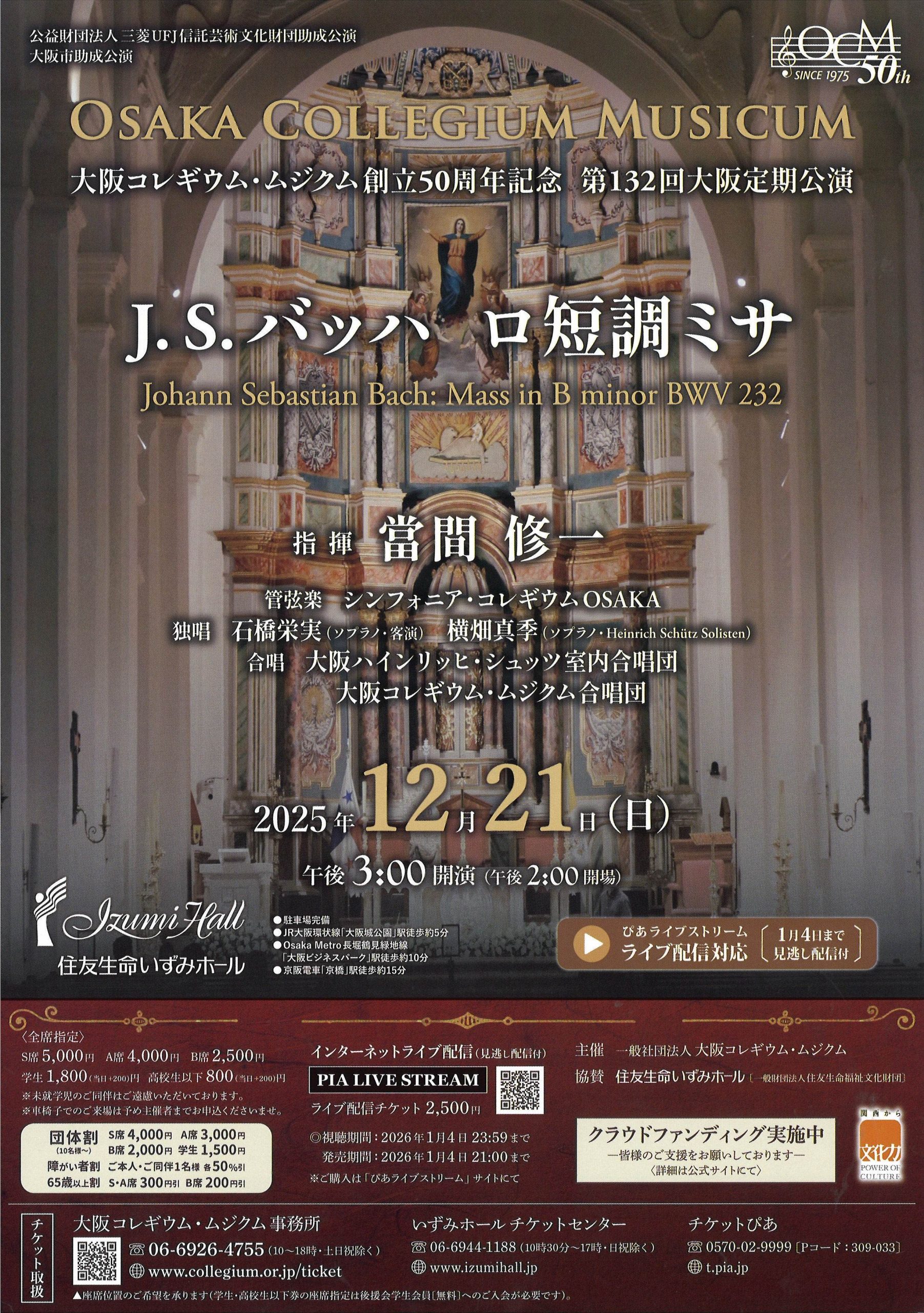 - 大阪コレギウム・ムジクム創立50周年記念 第132回大阪定期公演 〈J.S.バッハ/ロ短調ミサ〉