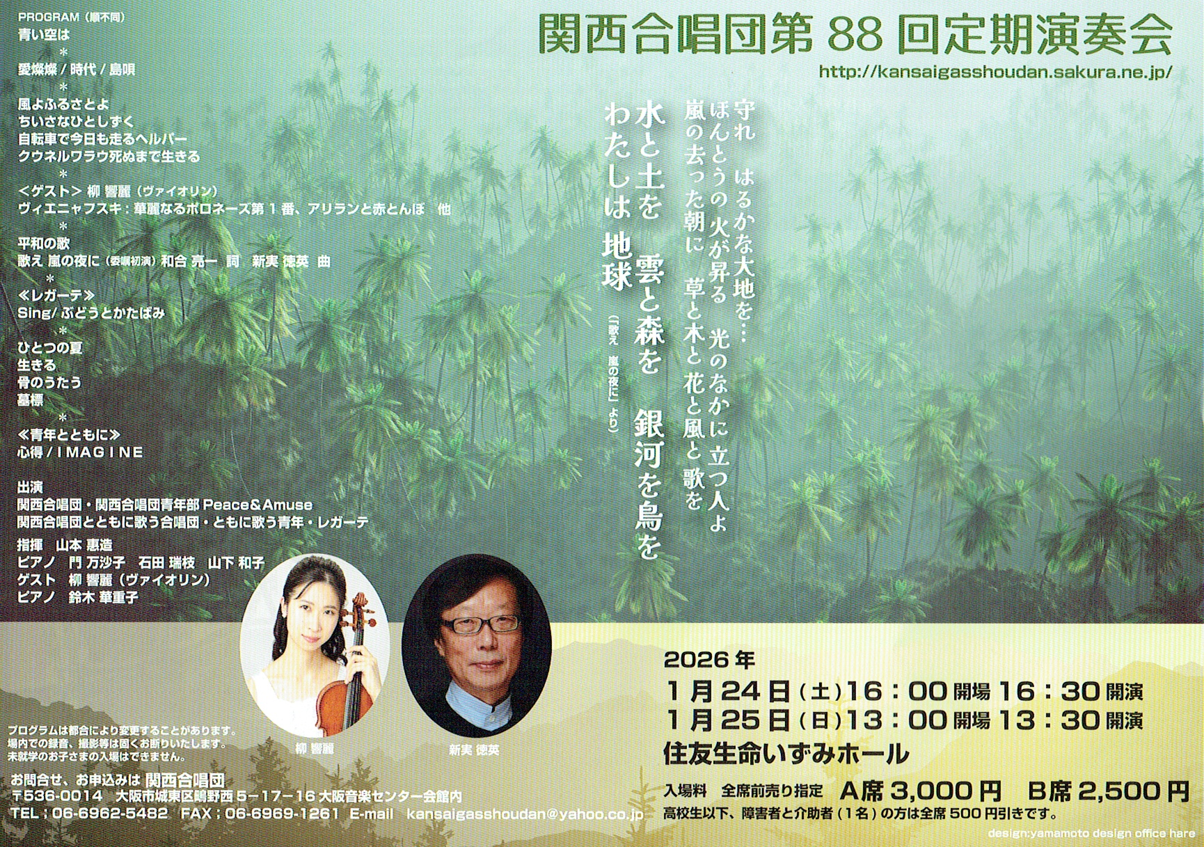 | 出演者 | 関西合唱団 関西合唱団とともに歌う団員・青年 レガーテ 柳 響麗(ゲスト/vn) |