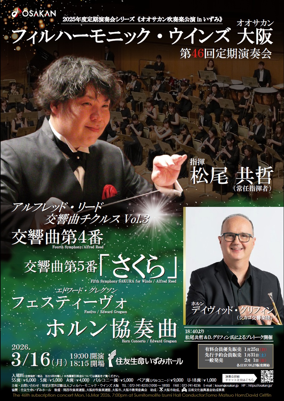 - 2025年度定期演奏会シリーズ《オオサカン吹奏楽公演inいずみ》 フィルハーモニック・ウインズ大阪 第46回定期演奏会